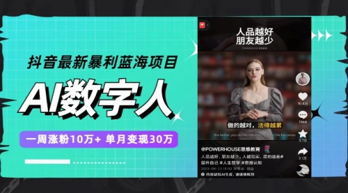 抖音最新暴利蓝海项目,AI数字人,一周涨粉10万+,单月变现30万