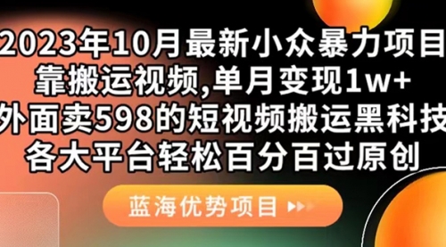 外面卖598的10月最新短视频搬运黑科技,各大平台百分百过原创靠搬运月入1w