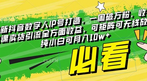 最新抖音数字人IP号打造,一周破万粉,收徒卖课卖货引流全方面收益