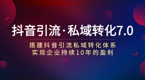 抖音引流·私域转化7.0:搭建抖音引流·私域转化体系实现企业持续10年盈利