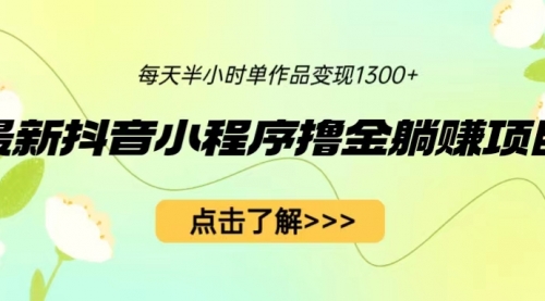 抖音小程序撸金躺赚项目,一部手机每天半小时,单个作品变现1300+