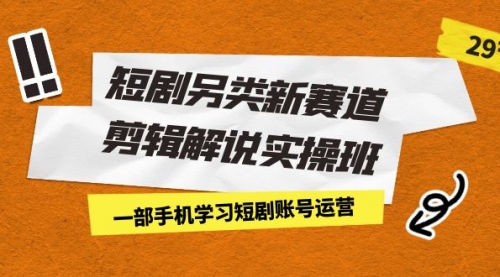 短剧另类新赛道剪辑解说实操班:一部手机学习短剧账号运营(29节价值500)