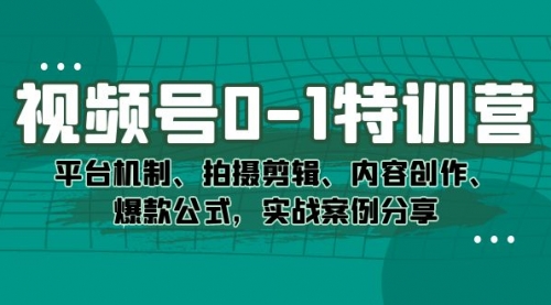 视频号0-1特训营:平台机制、拍摄剪辑、内容创作、爆款公式,实战案例分享