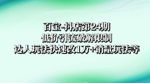 抖店培训-第24期:低价引流破解限制,达人玩法快速改1万+销量玩法等